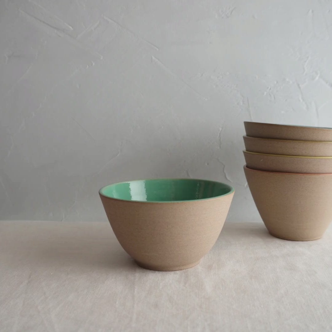 Un grès caramello lasciato grezzo all’esterno per mantenere l'effetto materico, acceso dal contrasto del colore interno, caldo e luminoso. Questo pezzo parzialmente grezzo regala una sensazione tattile che sorprende ogni volta che lo si usa.